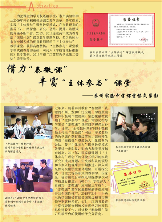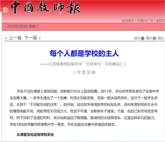 《泰州教育》宣傳我校辦學特色
