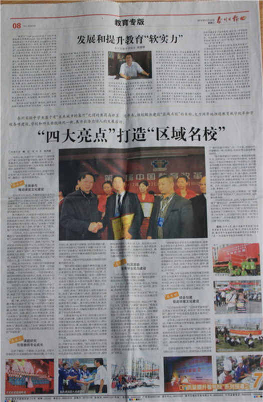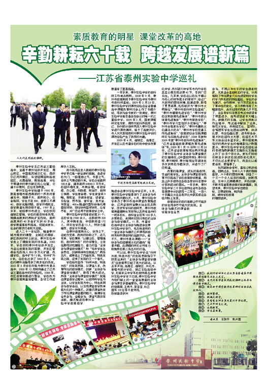 《泰州日報》專版報道我校推進教育教學改革和學校各項建設工作