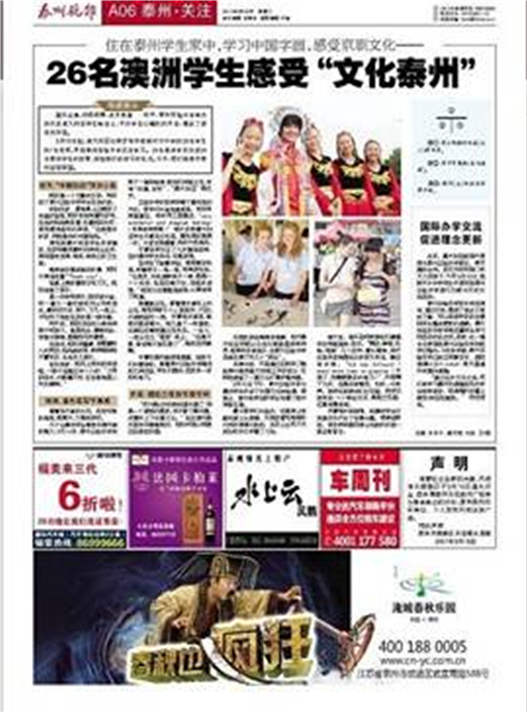 《泰州晚報》專題報到我校國際交流情況