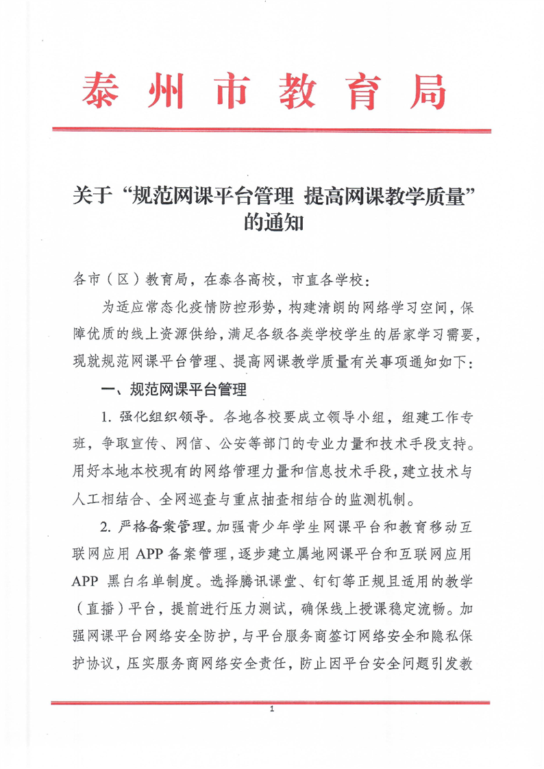 關于“規范網課平臺管理 提高網課教學質量”的通知
