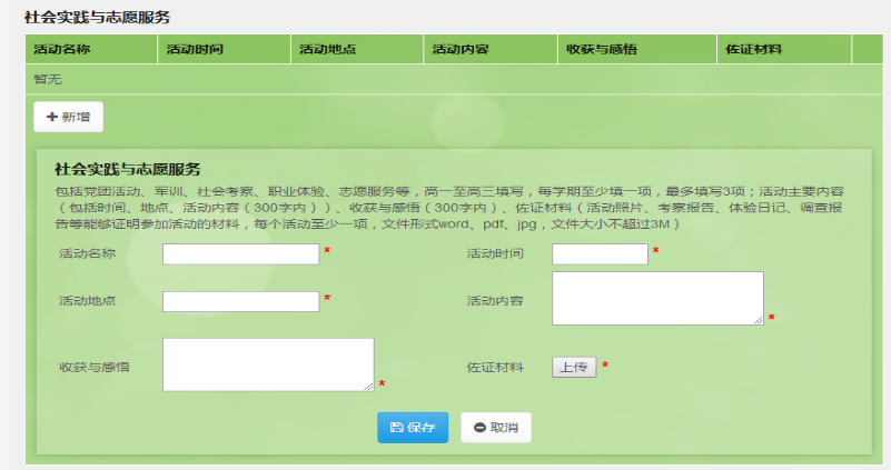 2.必填項(xiàng):社會(huì)實(shí)踐與志愿服務(wù)(圖片形式),期末總結(jié)(文字形式,不超過(guò)600字)。