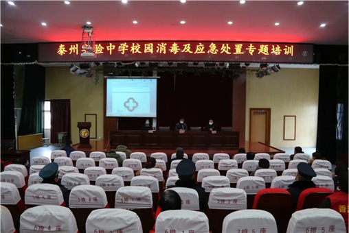 為進一步加強學校應對新冠肺炎防控能力,有效做好校園各項防控工作, 3月10日上午,學校總務處在校長室統一部署下組織學校安管處負責人、班主任代表、后勤工作人員、食堂工作人員和安保人員在報告廳召開泰州實驗中學校園消毒及應急處置專題培訓會。培訓會邀請醫藥高新區寺巷人民醫院感染科韓興紅主任給參會人員作校園消毒及應急處置專業知識的培訓,學校黨委書記、校長卞玉年出席培訓,會議由總務處主任張建華主持。
