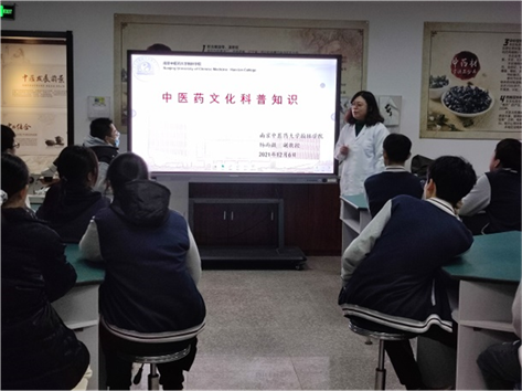 第一階段:聽取專家講座,初步了解中醫藥文化知識。我們特別邀請到南京中醫藥大學翰林學院藥學院副院長呂志陽博士、楊雨薇副教授為學生們科普中國醫藥知識。