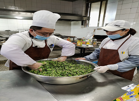 本次活動,以包餃子大賽為主題,充分展現了女教師三尺講臺外的別樣風采。活動前期,后勤服務中心精心準備,材料采買、餡料調制健康節省,場地打掃、餐盤用具衛生干凈,確保了活動的順利進行。