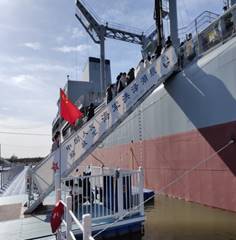 在講解員的引領(lǐng)下,我校師生先后登上了退役 “881洪澤湖號”補給艦、退役“108西寧號”導(dǎo)彈驅(qū)逐艦、退役“515廈門號”導(dǎo)彈護衛(wèi)艦。這三艦一艇都在人民海軍72年發(fā)展史上留下了光輝的一筆,如今,雖“褪去戎裝”,但依然靜靜展示著人民海軍波瀾壯闊的發(fā)展歷程。聆聽講解員的介紹,師生們詳細了解了這三艦一艇發(fā)展的歷程與完成的任務(wù),感受到中國人民海軍保衛(wèi)祖國領(lǐng)海的堅定信念與豪情壯志。