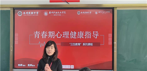 下午1點30,泰州職業技術學院8名骨干教師為我校高一年級學生分別開設《急救小技能》、《生活急救常識》、《青春期心理健康指導》、《生命科學教育》、《常見傳染病預防知識》、《口腔及視力保健知識》、《中醫傳統文化與營養保健知識》、《中藥識別》等8門理論課程。