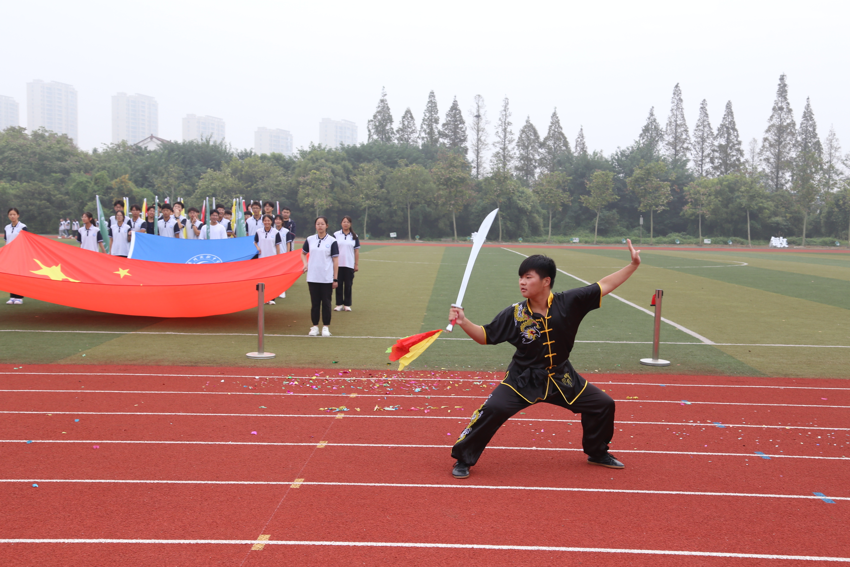 在全體師生奏唱莊嚴的國歌后,副校長王加升致開幕詞。王校長由去年的北京冬季奧運會、殘奧會和今年的成都大學生運動會談到正在杭州舉行的亞運會,強調體育是社會發(fā)展和人類進步的重要標志,是綜合國力和國家軟實力的重要體現(xiàn);指出一年一屆的秋季田徑運動會是學校全面貫徹黨的教育方針,落實立德樹人根本任務,發(fā)展素質教育的重要舉措。王校長希望同學們從運動會中學會協(xié)作、學會助人、學會拼搏、學會承受,樹立健康理念。